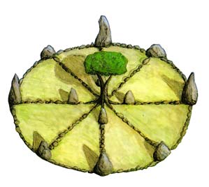 asiatischer Tempel, christlicher Kirchen und keltischer Steinkreise.